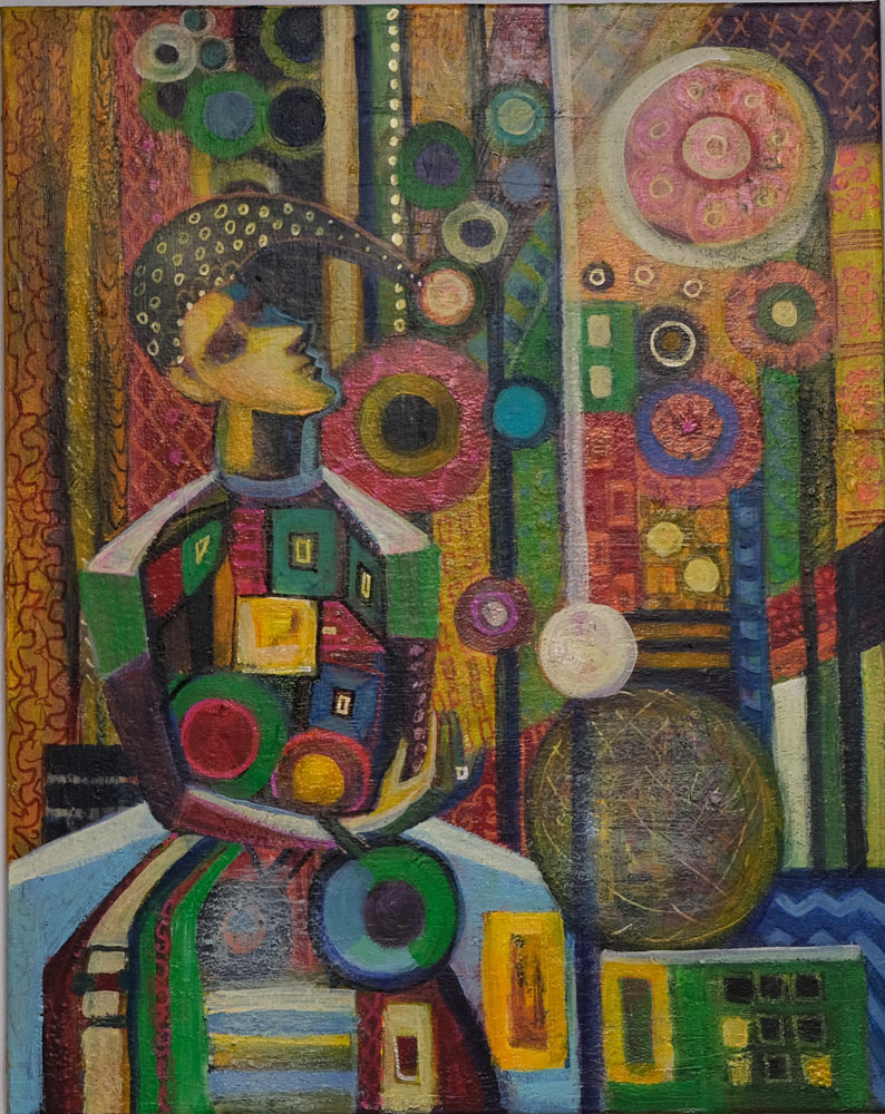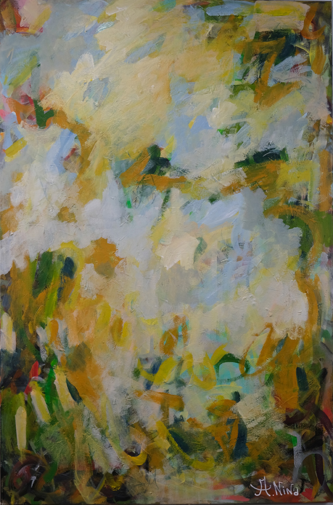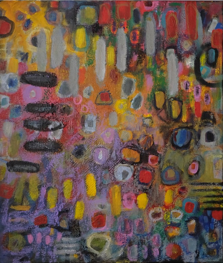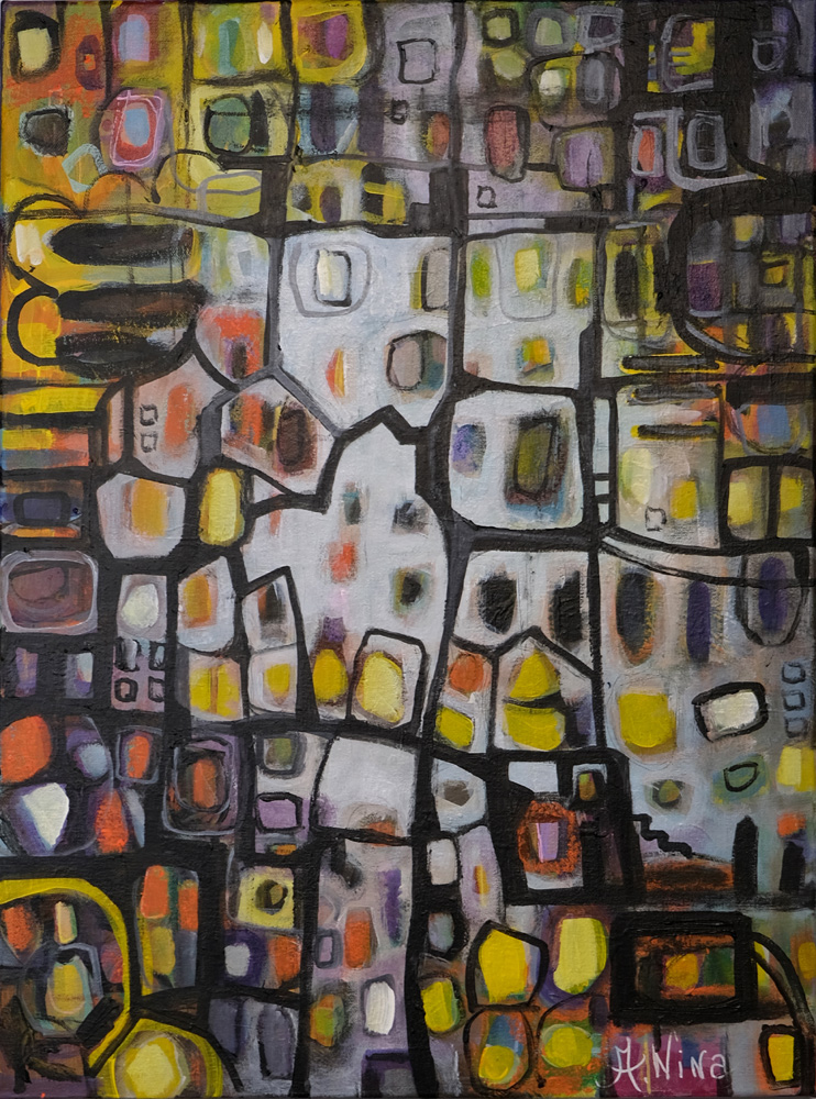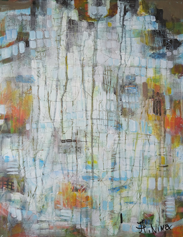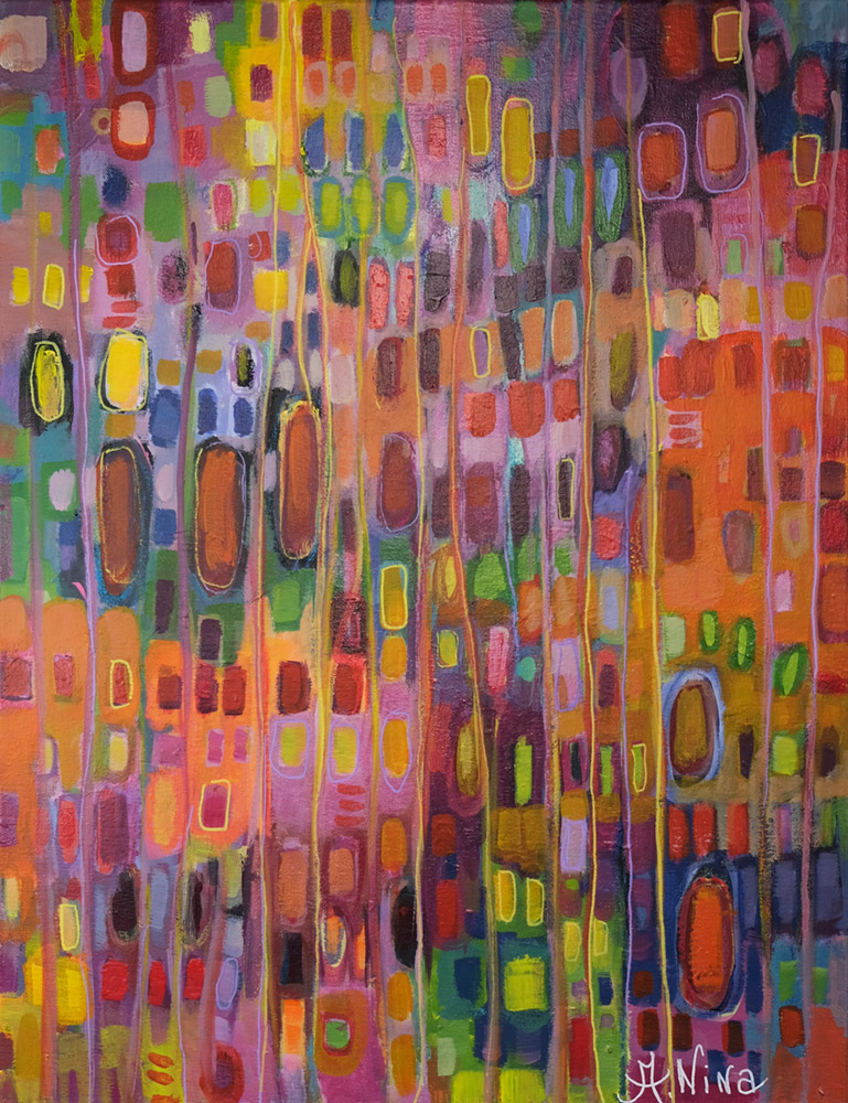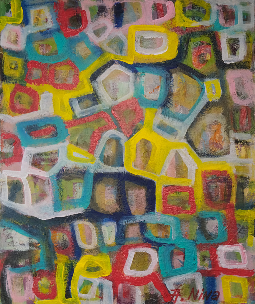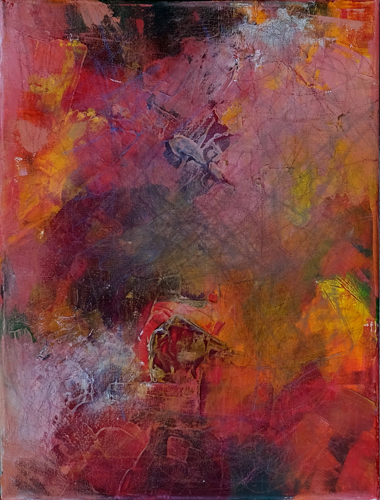My abstract art shows a visual language of shape, form, color, lines and marks to create a composition independence from visual references. If you are somebody who enjoys vibrant and dynamic art techniques and styles that radiate energy, this might be just for you. Since acrylic paint dries more quickly then oil paint, I usually use multiple layers with acrylic, marks by oil pastel, crayons and other marking tools, that extend my painting process over the course of a week.