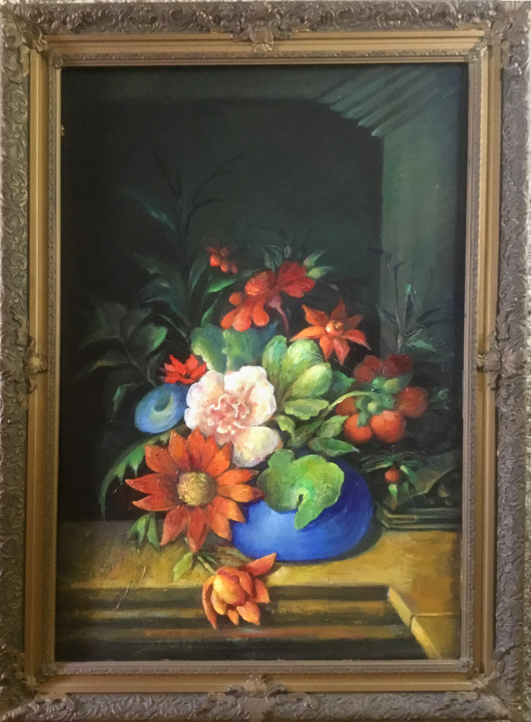 #1142 Bottles 29×41 With frame Oil $850#1143 Colorful Bottles 24×36 With Frame Oil $850#1125 Flowers Offering 30×40 Oil $850#1155 Still life flowers 24×36 Oil $450#1132 House of the music 24×48 Oil $850#1115 Glass Of Martini 24×36 Oil $750#1099 Rhapsody for chicken 24×28 Oil $1600#1135 Forgotten island 30×40 Oil $950 #1110 Red Shoes 24×48 Acrylic $800#1116 Cirque du Soleil 30×48 Oil $ 2500#1120 Fortuneteller 40×60 Oil $ 3500